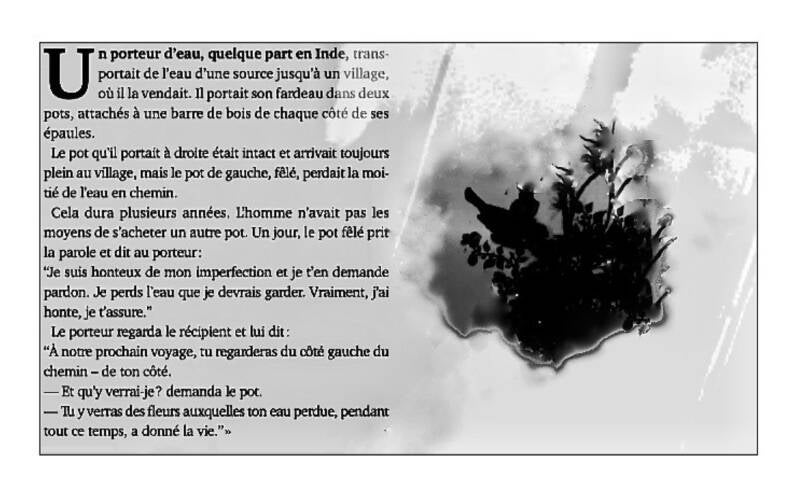 -Non, Maître, j'avais besoin d'air et ne pensais qu'à cela. - Eh bien, reprit le sage, pour acquérir la sagesse, il faut la désirer aussi intensément que tu désirais de l'air, il y a un instant. Il faut lutter pour elle à l'exclusion de toute autre ambition dans la vie. Elle doit être ta seule et unique aspira- tion, nuit et jour. Si tu cherches la sagesse avec une telle ferveur, un jour, tu la trouveras.